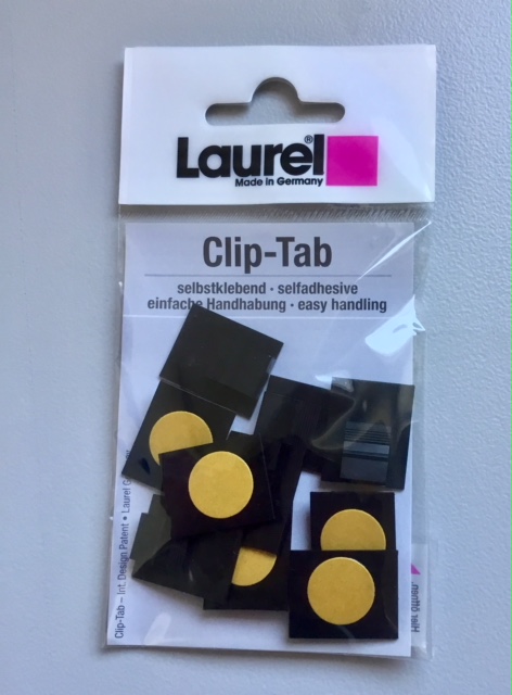 Der Zettelhalter Clip Tab ist eine moderne, selbstklebende Ansteckklammer. Er hält auf allen glatten Obeflächen wie Beton, Metall, Glas und Holz. Einfach die Selbstklebefolie abziehen und den Clip Tab aufkleben. Jetzt Clip Tab öffnen, Papiere einstecken und schließen. Fertig! Der Laurel Clip Tab ist der ideale Helfer in Büro und Haushalt. Das Material ist sehr strapazierfähig und flexibel, somit kann der Clip Tab immer wieder verwendet werden. Produktdetails: 100% „Made in Germany“,aus Polyoxymethylen (POM), Größe: 20 x 24 mm, erhältlich in den klassischen Farben schwarz und weiß. Der Laurel Clip-Tab für Namensschilder oder Notizen an Maschine und Computer. hält Notizen und Landkarten am Armaturenbrett. zeigt immer die richtige Information in Büro und Haushalt.